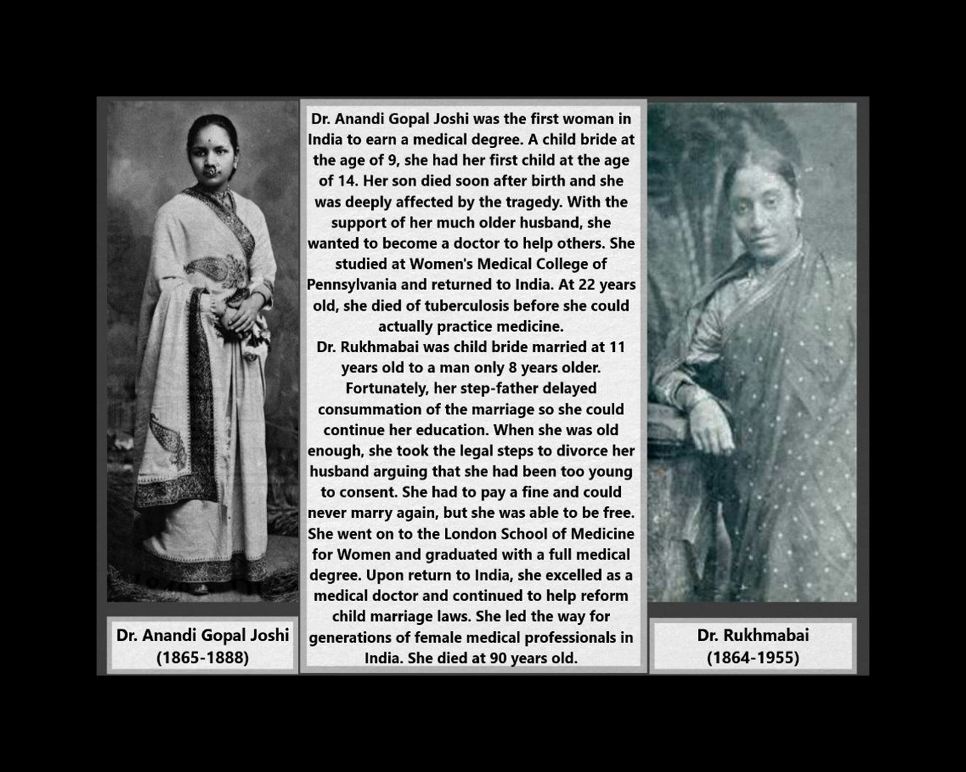Anandi Gopal Joshi (also known as Anadibai Joshi) was the first Indian woman to earn a medical degree but sadly she died before she was able to start a practice in her home country. Rukhmabai was the second woman to earn a medical degree and the first woman to actually practice medicine in India. She had a long and influential medical career.